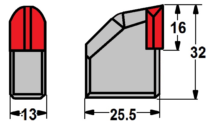 1 | Weld On 16mm Cap Tooth H=32mm |