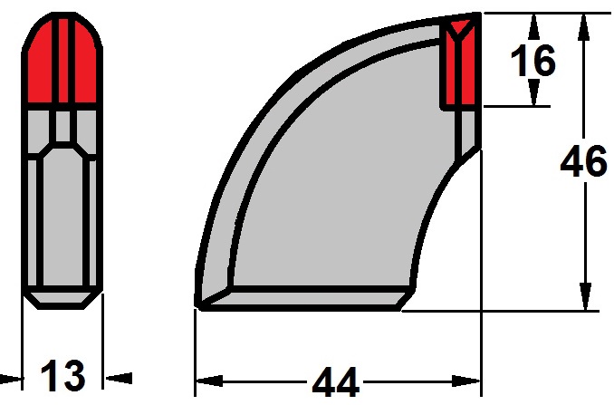 EM405 | 1 | Weld-On Tooth - 90° W=13, H=46 |